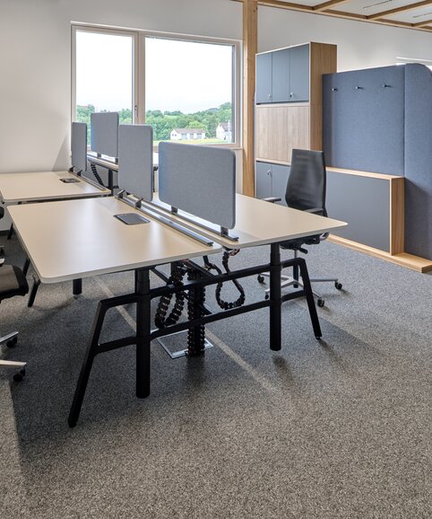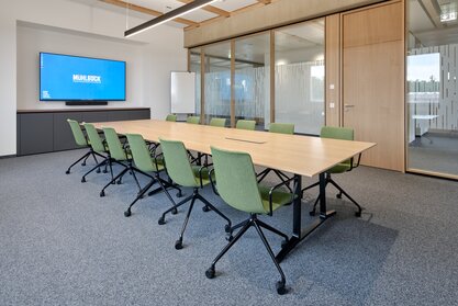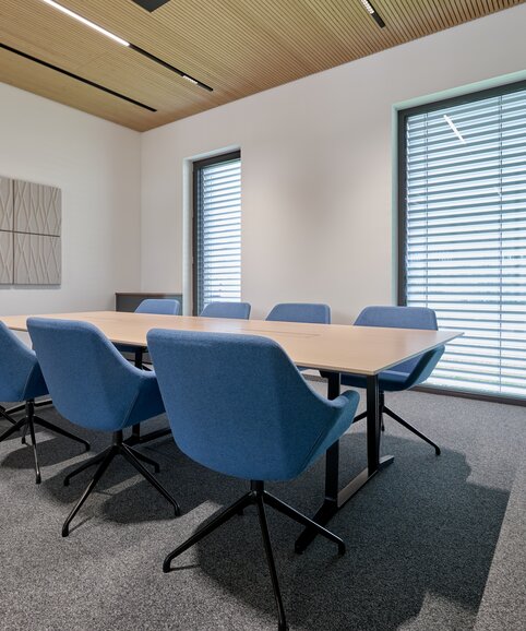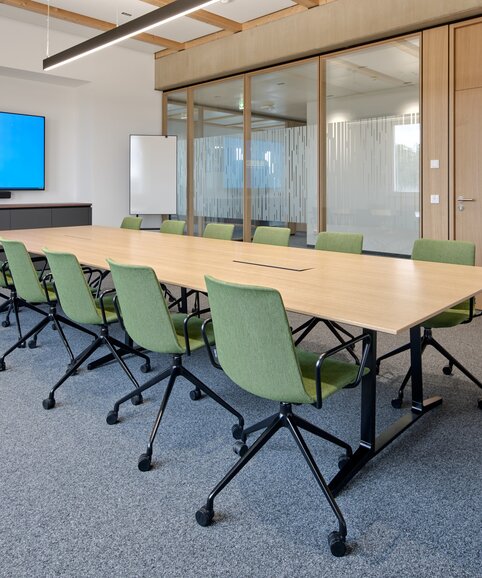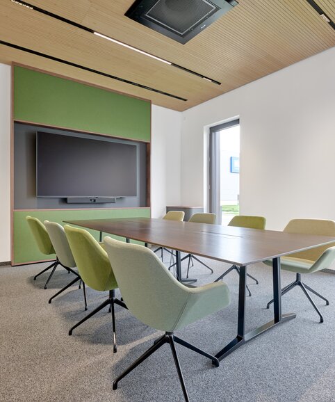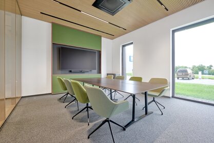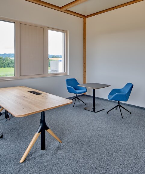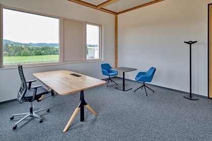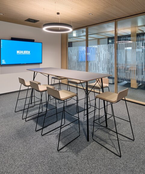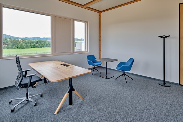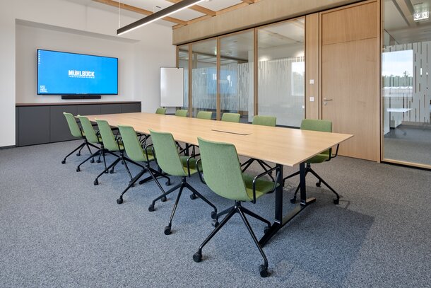 Mühlböck, a company specializing in the production of wood drying technologies, decided on a new office and production building in Eberschwang (Upper Austria) on approximately 9,500 m². Wood is a focus not only in the company's daily work, but also in the interior design concept of the new building. Based on the construction and design plans by Gebetsberger ZT, Roomware Consulting was entrusted with the office concept and implementation. Wiesner-Hager supplied the furnishings for the new offices.