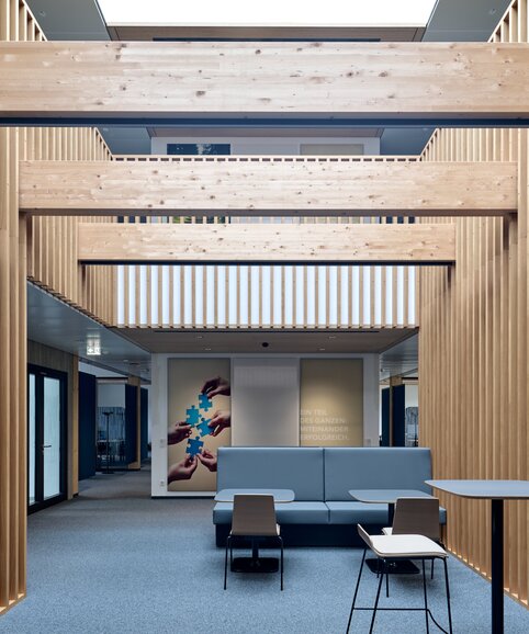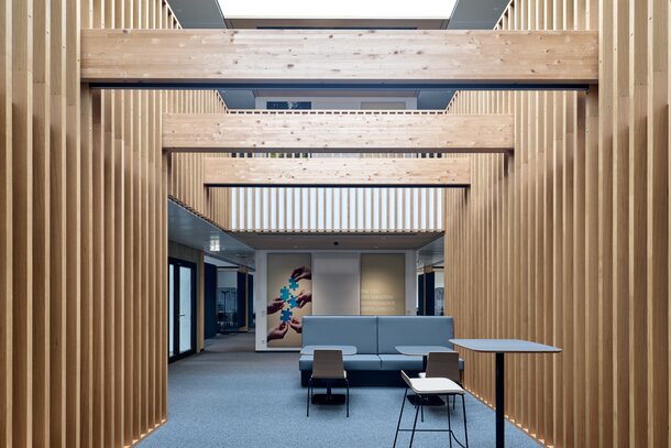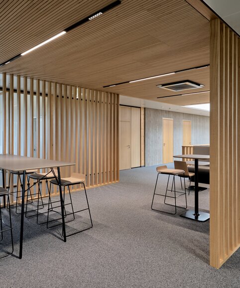 Wood is not only a central theme in Mühlböck's daily work; it is also reflected in the overall interior design. "A lot of wood was used, which made harmonizing the different wood tones a particular challenge. Ultimately, everything now creates a harmonious overall picture," says Wastlbauer, analyzing the design process.