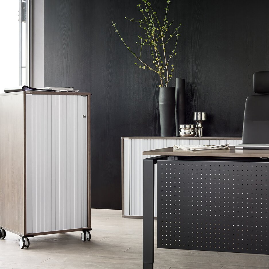 Wenn es um mobile Stauräume geht, leisten float_fx Trolleys wertvolle Dienste. Beweglich auf Rollen und ausgestattet mit Haltegriffen sind sie rasch überall dorthin zu bewegen, wo sie gerade benötigt werden. In der Version mit Arbeitsplatte fungieren Trolleys auch als kurzzeitiger Steh-Arbeitsplatz oder als Platz für Stehbesprechungen.
