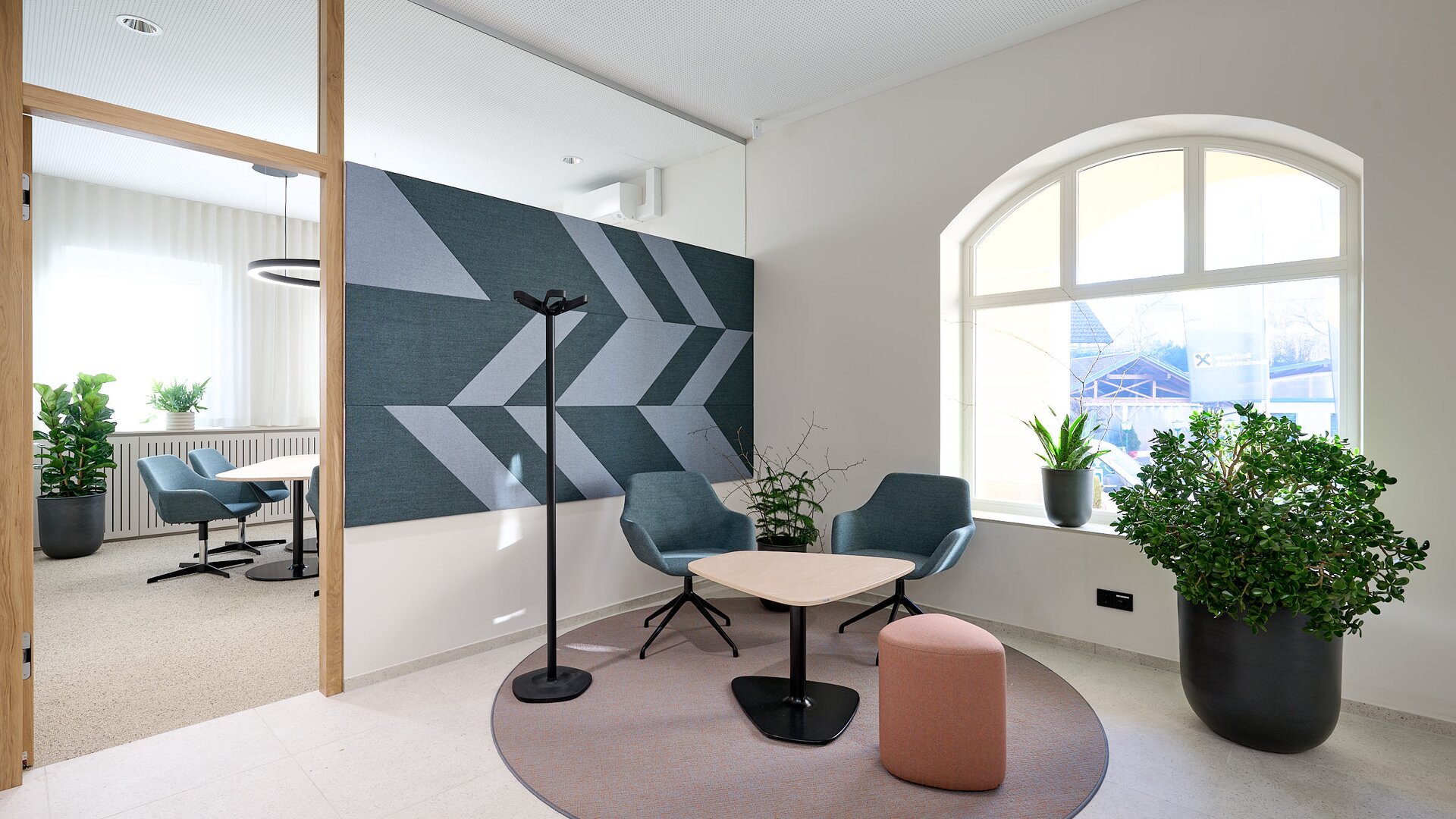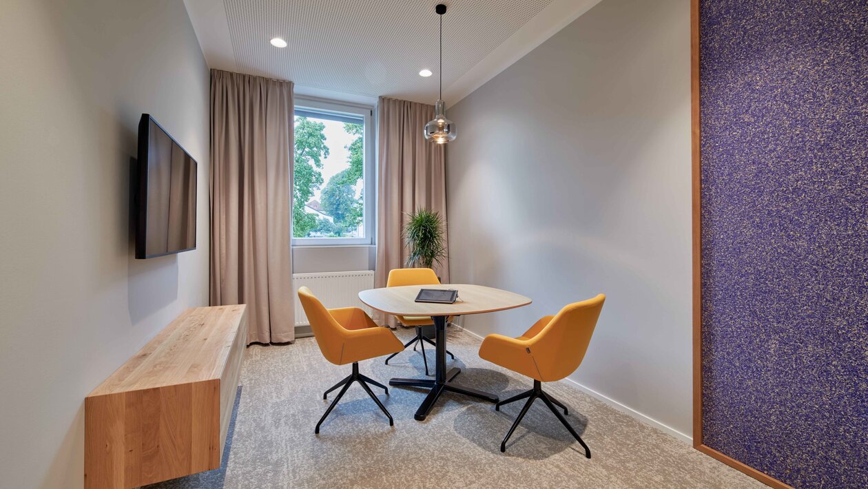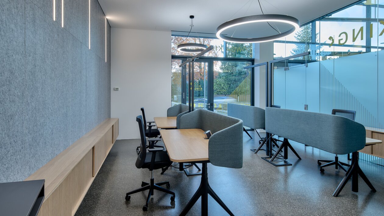 Auch völlig neue Standort-Konzepte können beleben: In die Bankstelle Ried im Innkreis wurde beispielsweise ein Coworking Space integriert. Auch externe Personen können sich im neu gestalteten Office einmieten. Das macht den Standort zu einem modernen Ort der Kollaboration.