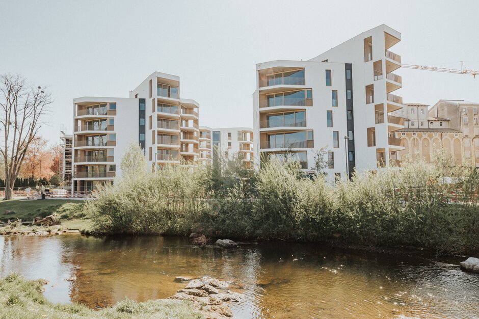 Am Rand der Salzburger Altstadt steht die Rauchmühle. Wo über sieben Jahrhunderte Getreide zu Mehl gemahlen wurde, entstanden Impulse für die Zukunft: modernste Wohnungen sowie Arbeitsräume für die Digital- und Kreativwirtschaft, die innovative Arbeitsformen, Vernetzung und Austausch fördern. Neu gestaltete, renaturierte Flusslandschaften entlang von Glan und Mühlbach bringen Mensch und Natur in Verbindung. „Revitalisierung und Renaturierung“ von Grund und Boden war die Devise. So wurde das innerstädtische Areal wieder belebt, nachverdichtet und aufgewertet. Die Bestandsgebäude – darunter der Silo und das alte Mühlhaus – wurden nicht abgerissen, sondern revitalisiert und für neue Anwendungen adaptieren. Die Herausforderung? Historische Substanz bewahren, ohne den Anschluss an zeitgemäße Architektur und Infrastruktur zu verlieren. „Ein durchmischtes Quartier lebt von dem Zusammenspiel unterschiedlicher Einflüsse und Akteure“, beschreibt die PRISMA Holding AG, die mit der Entwicklung des Projektes Quartier Rauchmühle betraut war. Sieben Architekturbüros waren an der Planung und Gestaltung des Projektes beteiligt.