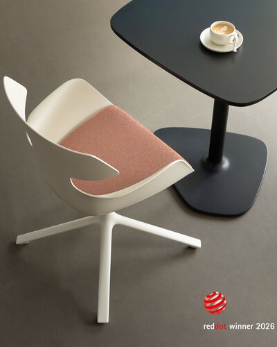 Ganz unscheinbar versteckt sich das genial einfache Verkettungssystem aus Kunststoff mit integrierter Paniksicherung unterhalb der seitlichen Schalenausformung beim Stapelstuhl puc. Beim Verketten wird das gewinkelte Element in den Nachbarstuhl eingedreht und durch seine V-Form sicher fixiert. Das sorgt für einen besonders raschen Auf- und Abbau von Reihenbestuhlungen.