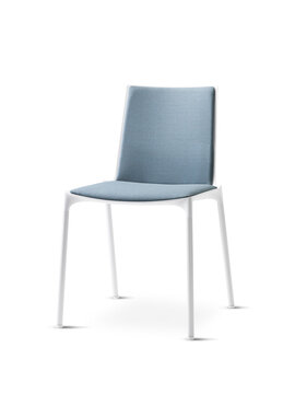 With the chairs, the top side of the plastic shell has a continuous, clear, flowing contour that is imbued with harmony and tranquillity. The way the legs seem to grow from the underside of the shell further emphasises this look. The plastic shell is reinforced from the corners to the centre of the seat, which creates a stabilising crisscross support that ensures the necessary weight bearing. The precision tubular steel chair legs are either powder-coated or chrome-plated and are bolted individually to the seat shell.