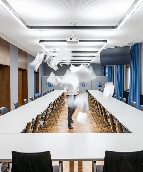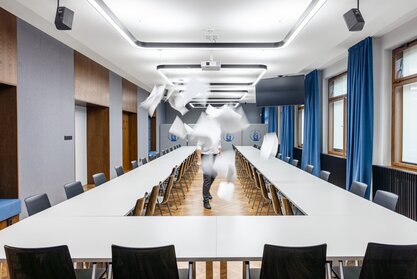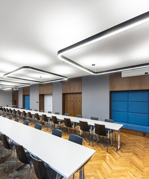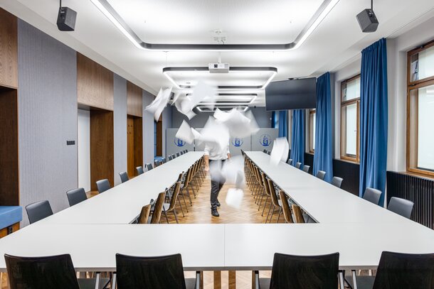 The aim of the project was to create a representative space that meets the requirements for comfort, acoustics and technical equipment while respecting the original architectural style.