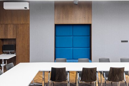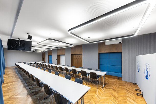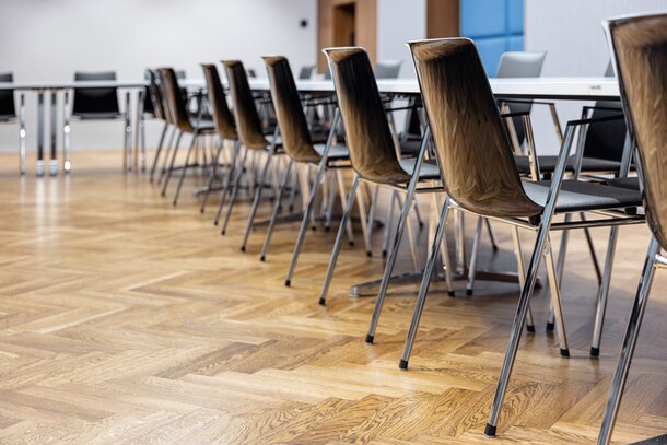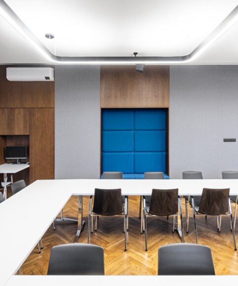 The implementation included the delivery of seating and table furniture that not only impresses with its high-quality design, but also meets technical criteria such as the possibility of connecting tables, stackability of chairs and general flexibility. Wiesner-Hager supplied nooi chairs and skill tables for the room. nooi offers comfort and elegance, while skill allows for variable arrangements depending on meeting requirements.